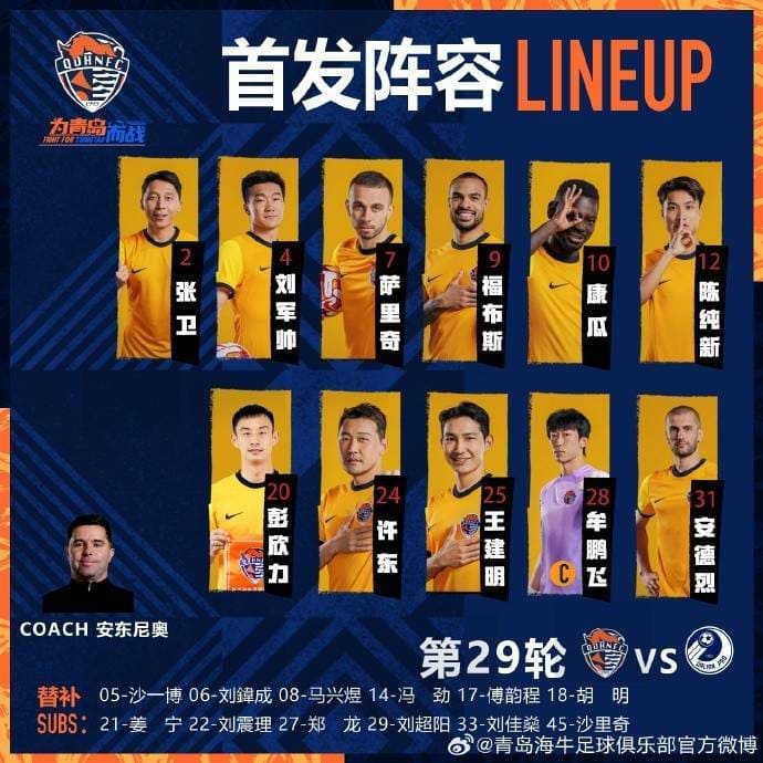青岛海牛替补: